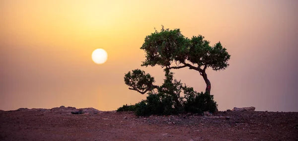 L'huile d'argan provient exclusivement du Maroc, où elle est extraite des noyaux de l'arganier (Argania spinosa), un arbre endémique de la région du Souss, au sud-ouest du pays. Son extraction, réalisée traditionnellement par pression à froid, est souvent assurée par des coopératives de femmes, jouant ainsi un rôle essentiel dans l'économie locale. En plus de ses nombreux bienfaits pour la beauté et la santé, l'arganier est crucial pour l'environnement, aidant à lutter contre la désertification grâce à sa résistance aux conditions arides. Cette huile précieuse, riche en nutriments, est un véritable trésor naturel et culturel du Maroc.